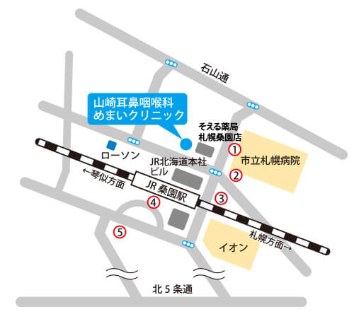 JR桑園駅北側出口から徒歩2分。鉄工団地通り沿い、交通機関・車利用のどちらも便利なロケーションです。駐車場も完備しています。